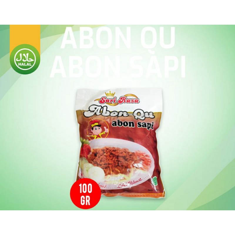 Produk Abon Sapi Sari Rasa Abon-Qu 100% Halal. Cocok untuk teman makan, untuk isian Lontong, Kue basah/Kering, tambahan nasi tumpeng, nasi kuning, dan makanan Indonesia lainnya.