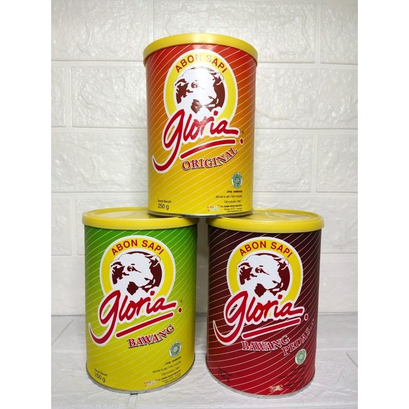 Abon gloria Sapi ukuran 250 grm rasa oringinal,pedas,bawang dan ayam 250gram