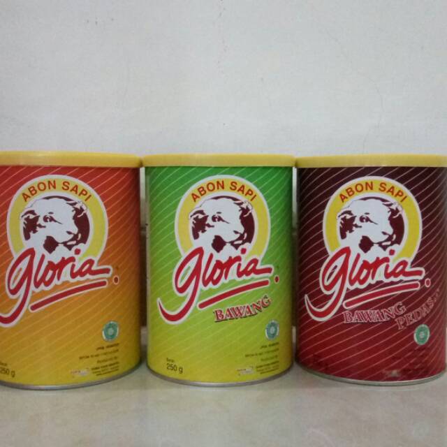 Abon sapi Gloria tersedia rasa original, bawang dan bawang pedas.