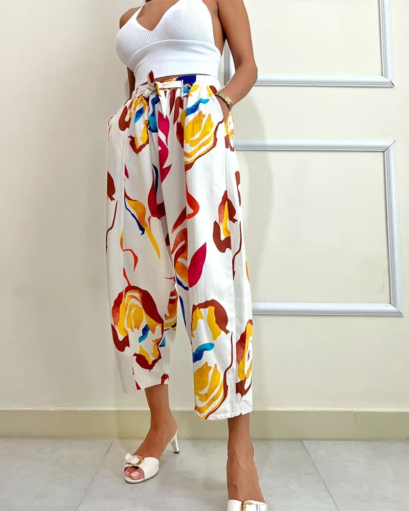 Women's Summer Floral Print New Fashionable Beach Evening Dress Sleeveless Backless Sexy Tight Long Skirt Trouser Women's Suit