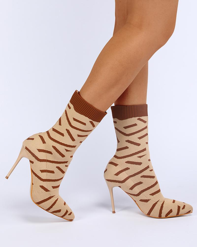 Abstract Print Stiletto Heel Ankle Boots, Brown