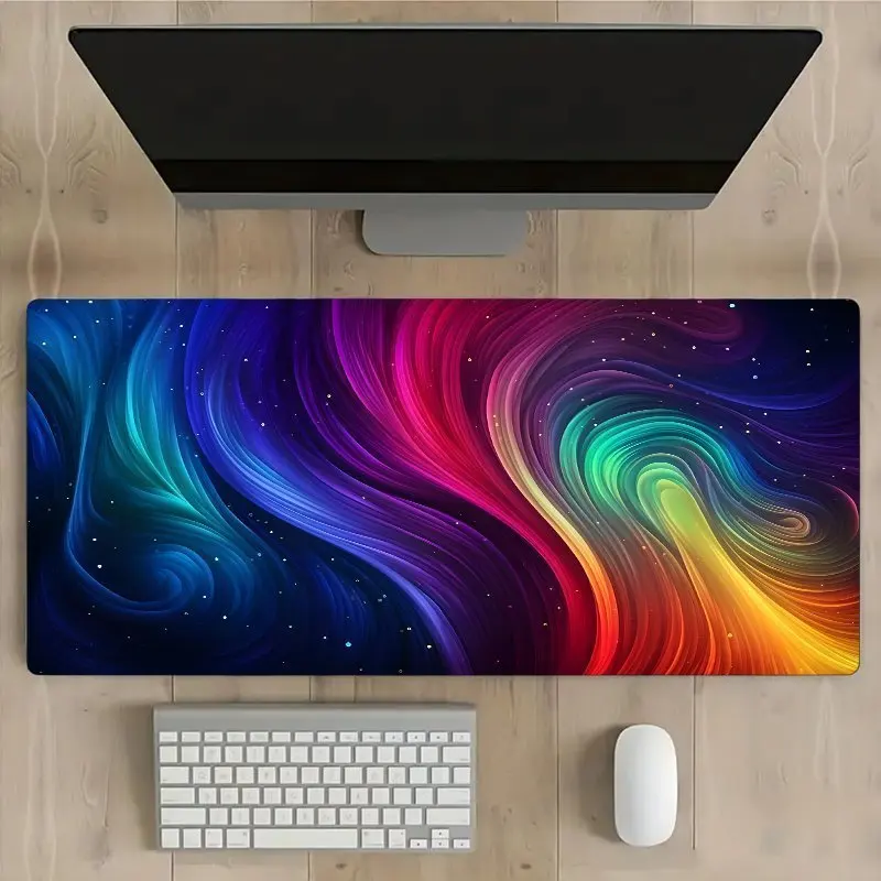 Abstract Rainbow Swirl Large Desk Mat Non-Slip Gaming Mouse Pad For Office Home Keyboard