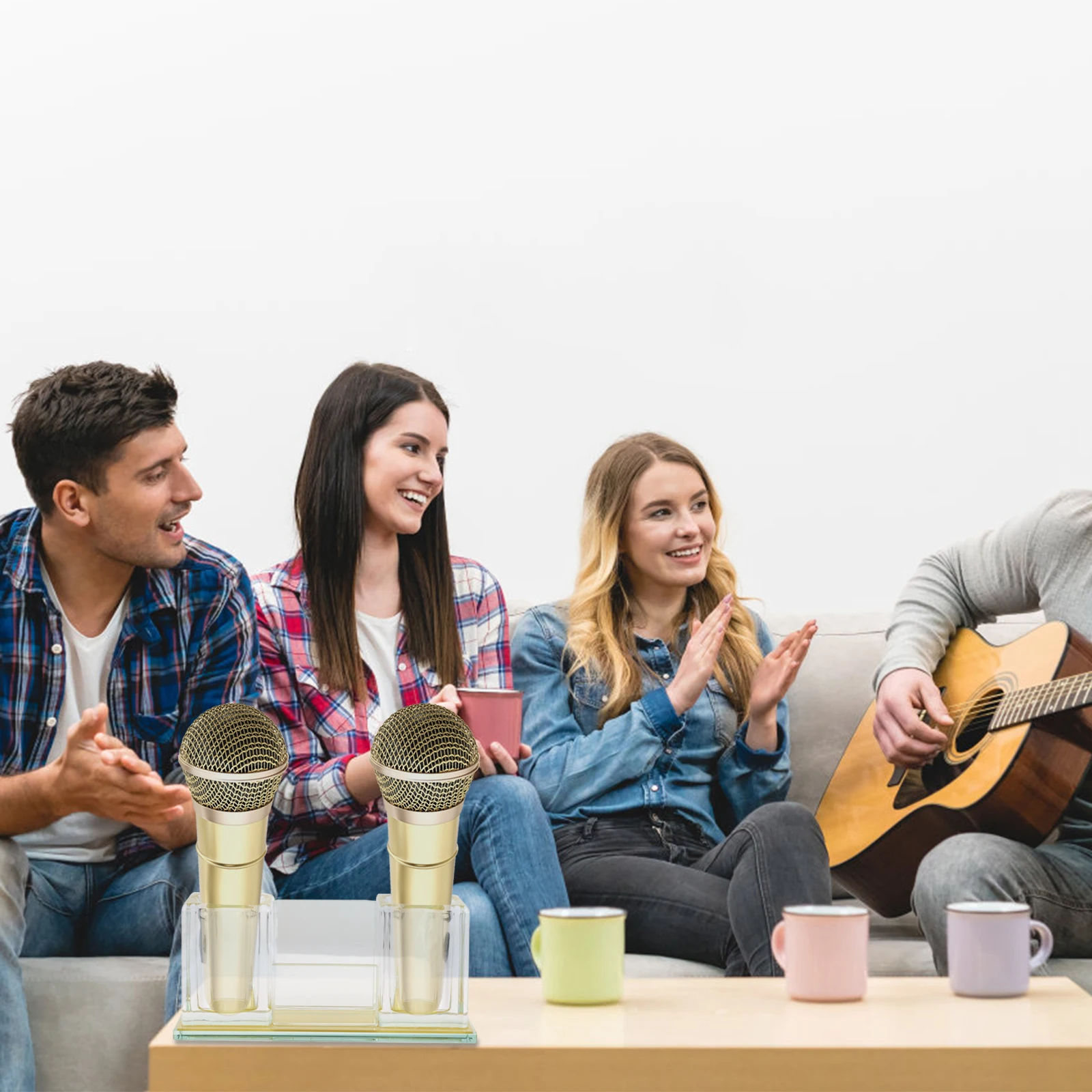 Acrylic 2-Slot Mic Stand Desktop Wireless Microphone Holder Stable Tabletop Mic Storage Rack Desktop Microphone Stand