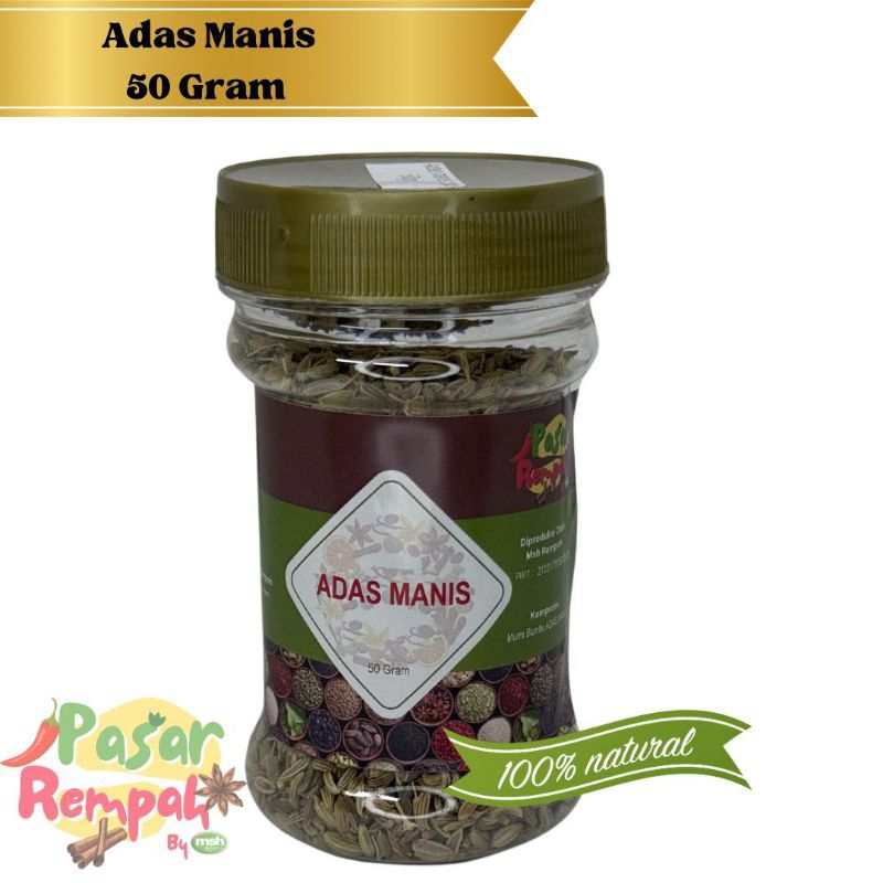 Adas manis (Foeniculum vulgare miller) sebagai bumbu dapur, ada banyak dimanfaatkan untuk pembuatan minuman, pembuatan roti, campuran acar, salad.