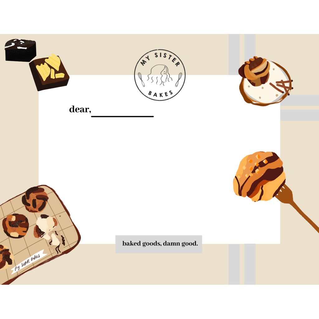 Kartu Ucapan dengan desain khusus oleh my sister bakes yang bisa dipesan untuk melengkapi order braids, coffee juga brownies anda.