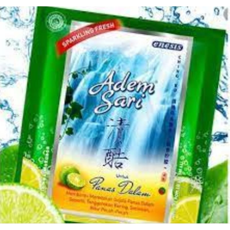 ADEM SARI 5 SACHET merupakan minuman penyejuk yang mengandung ekstrak Citrus Aurantifolia dan ekstrak Alyxia stellata. Dilengkapi juga dengan kandungan vitamin C. Digunakan untuk membantu meredakan gejala panas dalam, seperti tenggorokan kering, sariawan, dan bibir pecah-pecah.