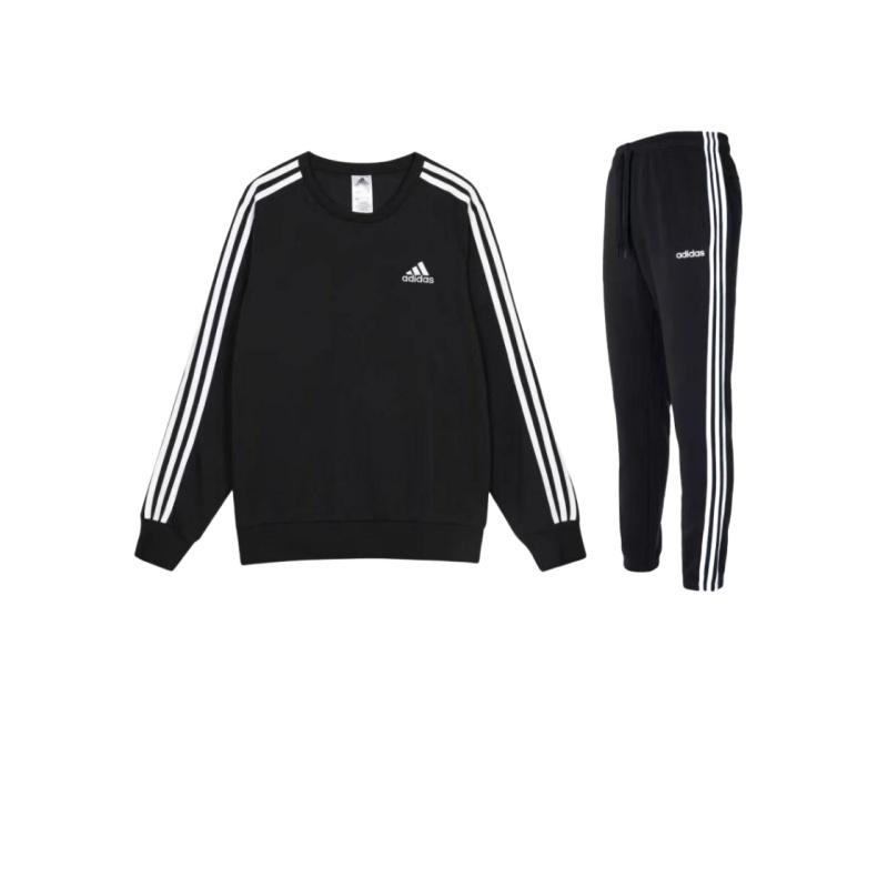 Adidas Comfortable Loose Fit Long Sleeve Crew Neck Top And Mid Waist Drawstring Pants Casual Sports Set Unisex Sets Black DQ3093+-GK9078 XL