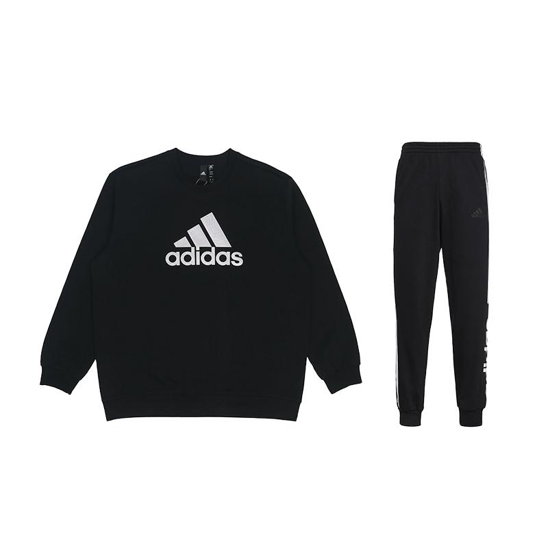 Adidas Retro Sports Style Round Neck Drop Shoulder Long Sleeve Top Comfortable Mid Waist Long Pants Sweatshirt Set Unisex Sets Black HM2960+GD5473 XS