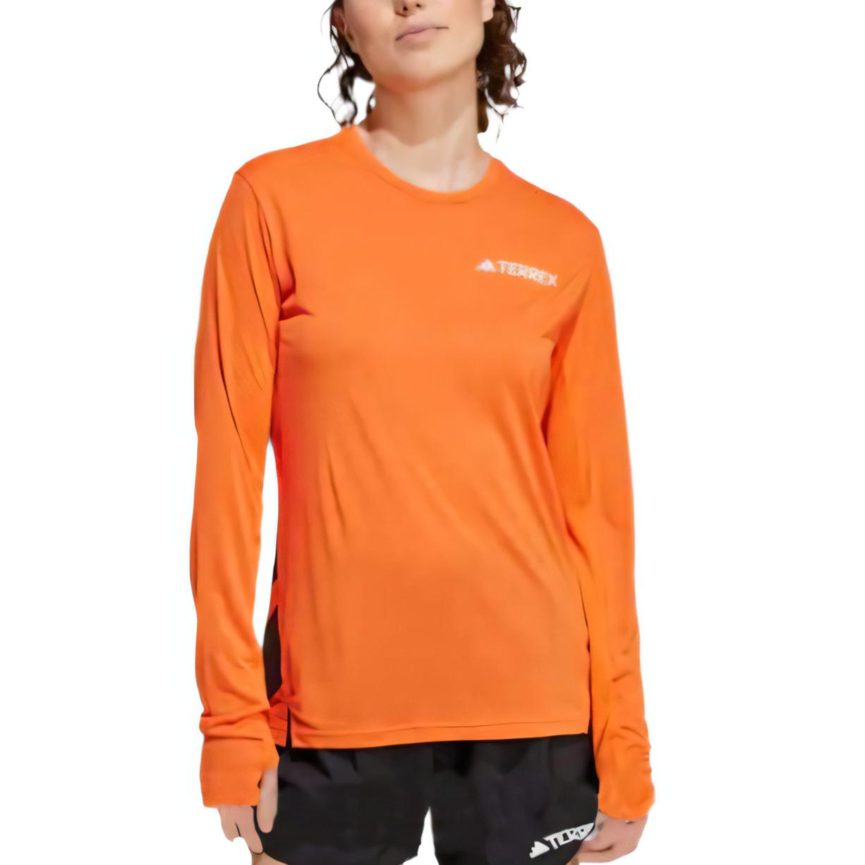 Adidas Terrex Удобная Универсальная Модная Однотонная Футболка с Длинным Рукавом Стандартного Кроя Женские Топы Оранжевый JN5326 S