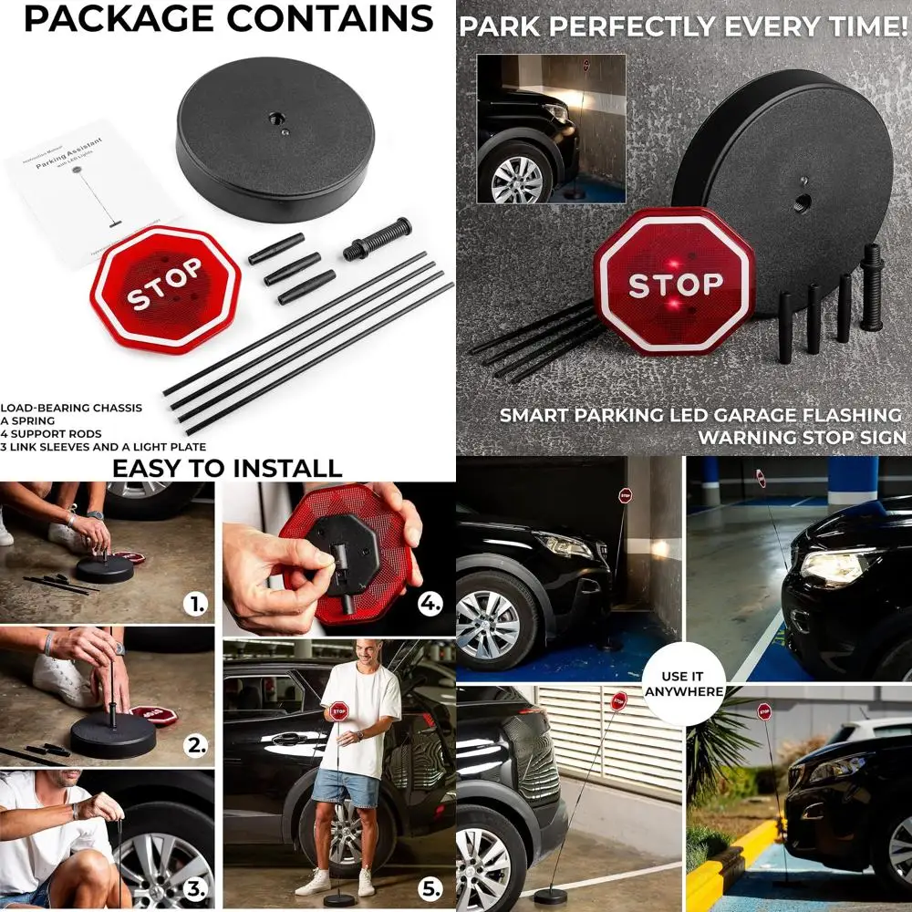 Adjustable 7 LED Lashing Stop Sign for Parking Assistance, Garage Use, and Vehicle Indicators - 4 Pack