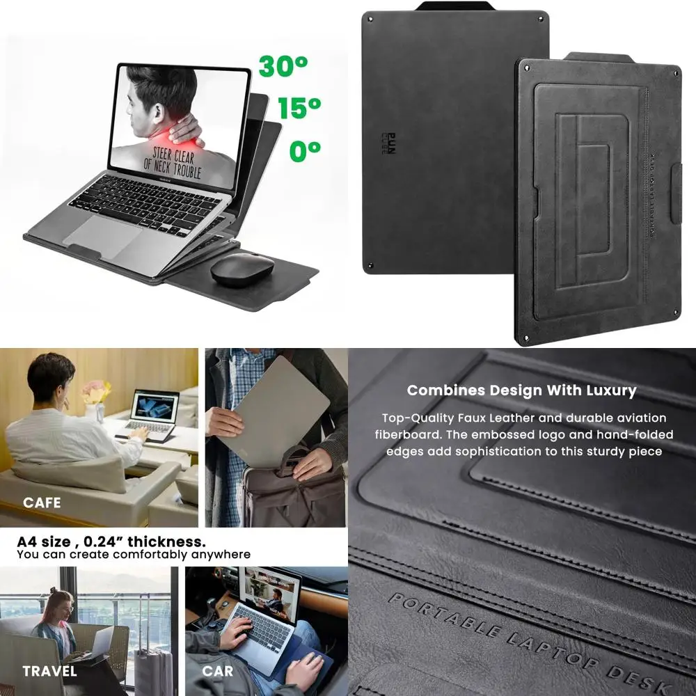 Adjustable Laptop Desk with Retractable Mouse Pad, Expandable Surface, and Heat Protection for Portable Use
