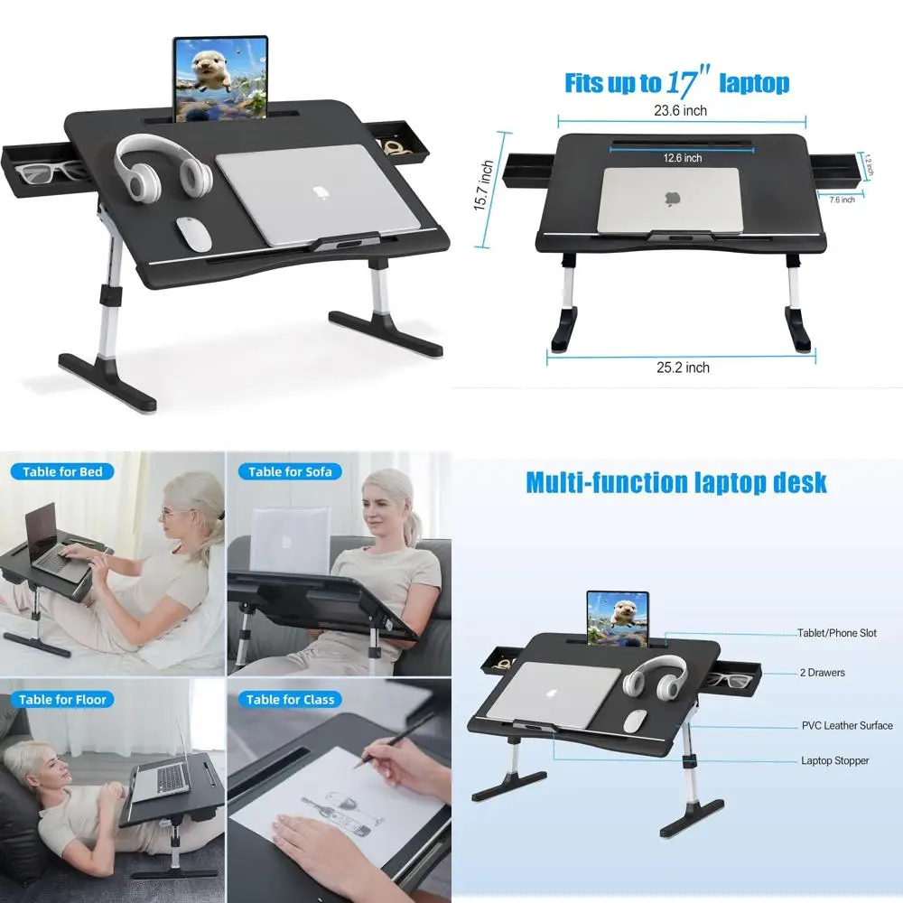Adjustable Laptop Desk with Storage Drawers, Premium Foldable Table for Eating, Working, and Drawing