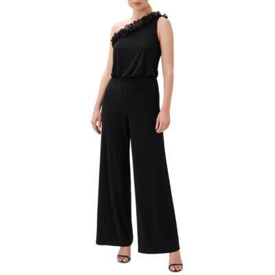 Adrianna Papell Женский комбинезон с оборками и сборками на одно плечо BHFO 1965, Черный