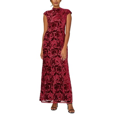 Adrianna Papell Женское бархатное вечернее платье с вышивкой и вставками BHFO 0181, Garnet