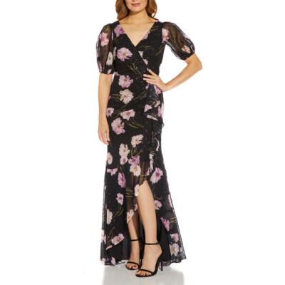Adrianna Papell Женское вечернее платье макси с оборками BHFO 8951, Black multi
