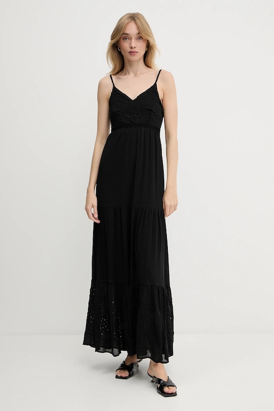 Spring New Loose Dark Design Style Transparent Pleated Patched Concealing Fat and Slimming Dress with V-neck one size fits all чорний