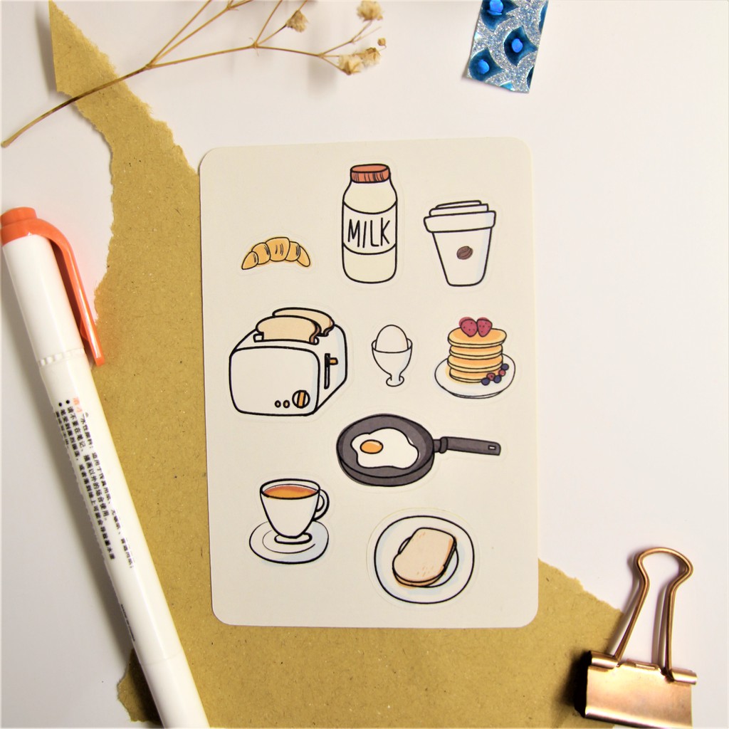 Aesthetic Sticker Set (breakfast) || siap tempel || printjunkiez