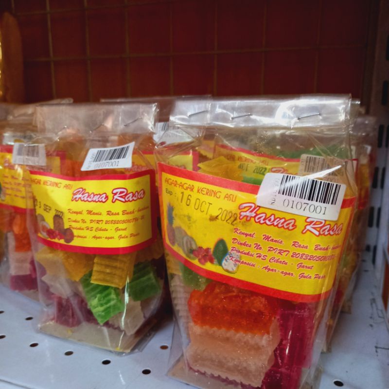 Agar-agar yang dikeringan dengan tekstur seperti permen dan manis.