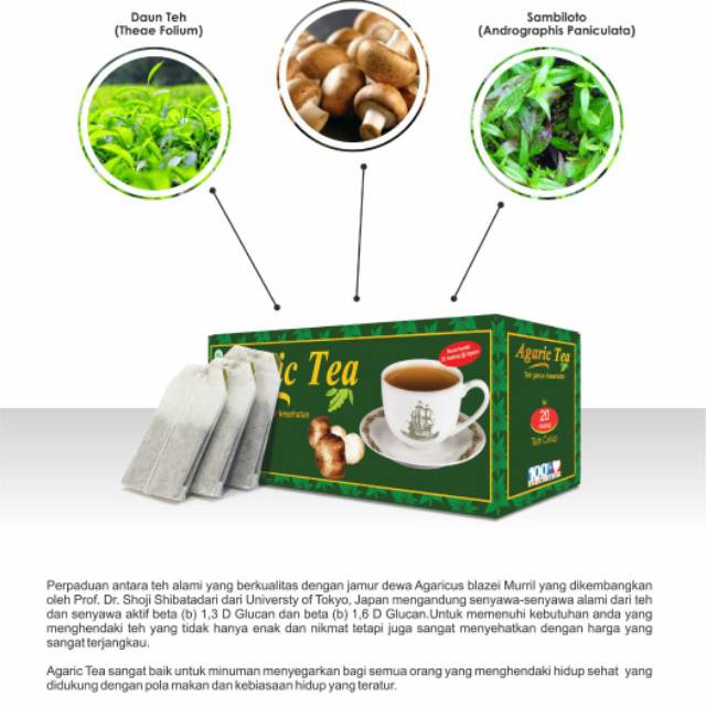 M erupakan Inovasi Teh Kesehatan pertama di Indonesia yang terbuat dari Ekstrak Jamur Dewa dan Ekstrak Sambiloto yang memiliki berbagai manfaat untuk kesehatan.