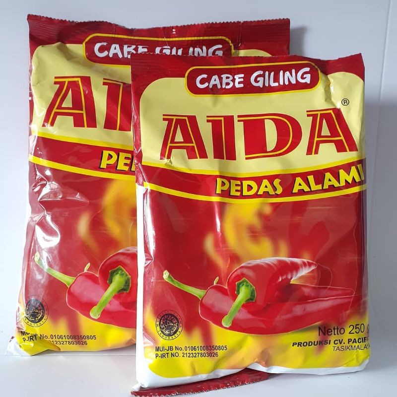 AIDA Bubuk Cabai adalah cabai bubuk yang dapat digunakan pada mie bakso, kupat tahu, bubur ayam, bakso tahu, lengko, soto, sosis, sate ayam, sate kambing, sate sapi, seblak, makaroni, asinan buah dan lain-lain.