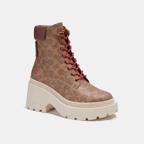| summary: | Listas para cruzar las calles con estilo, las botas Ainsley cuentan con una plantilla viscoelástica acolchada para comodidad durante todo el día y una suela de goma dentada con plataforma para una gran tracción. Confeccionadas con nuestra lona y piel de firma, están terminadas con un hardware metálico y nuestro icónico Coach Storypatch en la parte posterior del talón brindando un estilo total. |