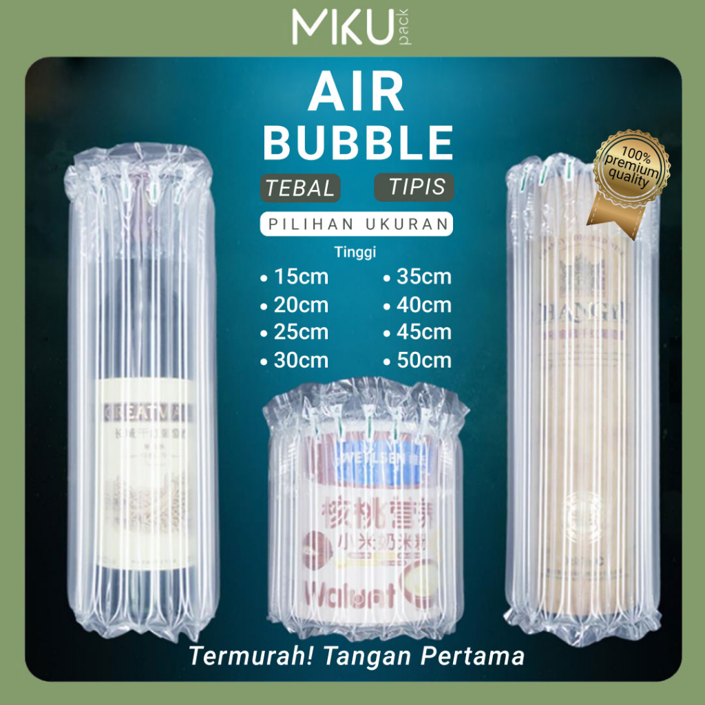 Air bubble yang tersedia saat ini varian tingginya bervariasi dari 15cm - 50cm. Dijual per meter dengan harga grosir jika membeli 1 roll = 50 meter