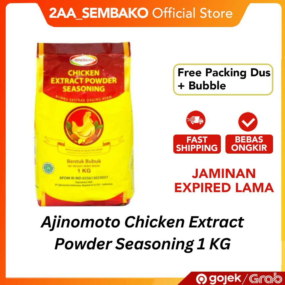 AJI-NO-MOTO® Brand Chicken Extract Powder Seasoning Bumbu Kaldu Ajinomoto 1kg Merupakan bumbu kaldu yang dibuat dengan ekstrak daging ayam (12%) berkualitas dan bumbu rempah pilihan. Berbentuk powder dengan warna kaldu kuning yang cerah alami dan dapat di kombinasikan dengan bumbu lain sehingga cocok untuk semua jenis menu makanan.