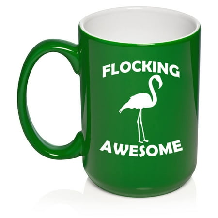 Flocking Awesome Flamingo Funny Ceramic Coffee Mug Tea Cup Gift for Her Him Men Women Mom Wife Husband Pun Family Coworker Boss Mom Dad Housewarming Birthday Cute (15oz Green)