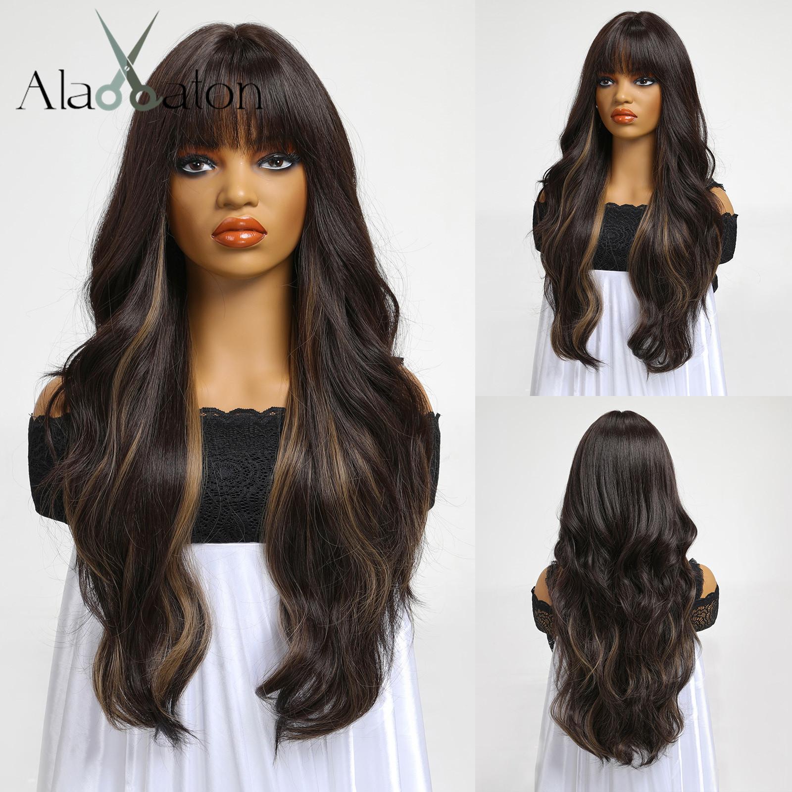 AlAN Фиолетовые синтетические парики для женщин Длинные волнистые вьющиеся парики Волоконный парик с бликами Парики для косплея Вечерние термостойкие