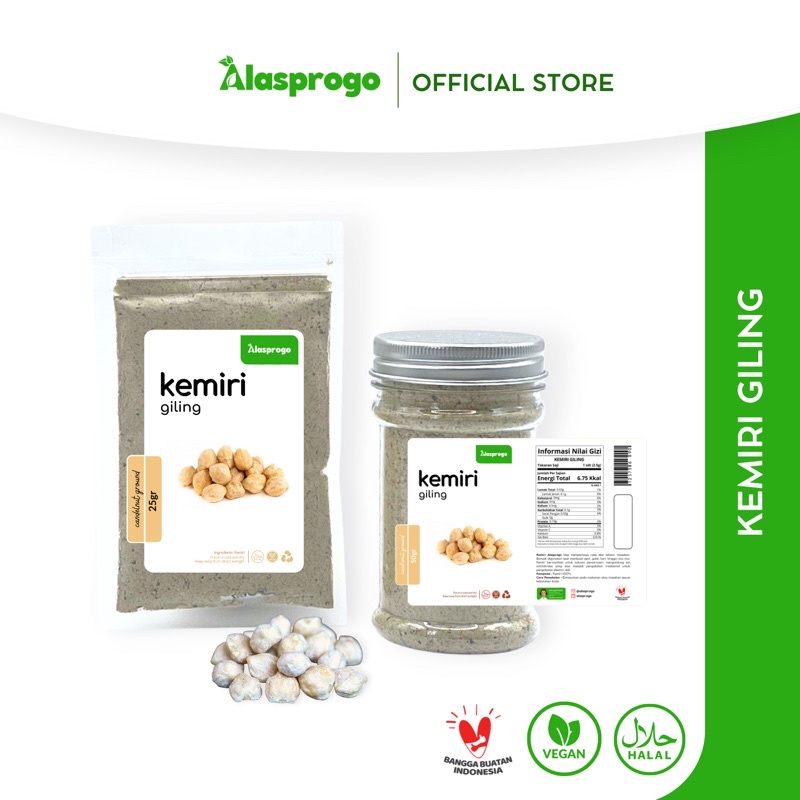 Kemiri Giling Alasprogo bisa memperkaya rasa dan tekstur masakan. Banyak digunakan saat membuat opor, gulai, kari, hingga rica-rica. Kemiri bermanfaat untuk saluran pencernaan, mengandung zat antimikroba yang bisa menjadi pengobatan tradisional untuk pengobatan disentri, dsb