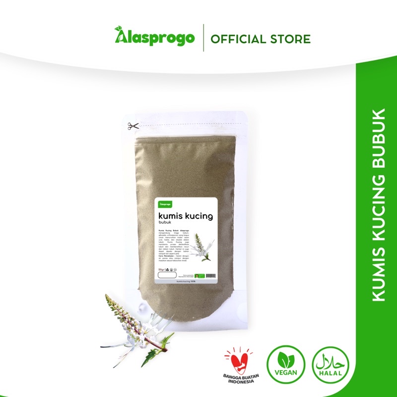 Kumis Kucing Bubuk Alasprogo mengandung tinggi kalium, glikosida, orthosiponon yang bagus untuk menurunkan kadar asam urat, fosfat, dan oksalat dalam tubuh. Kumis Kucing juga membantu proses detoksifikasi tubuh dan membersihkan racun dari dalam tubuh. Herbal ini juga dapat dipadu dengan bahan rempah lain seperti jahe.