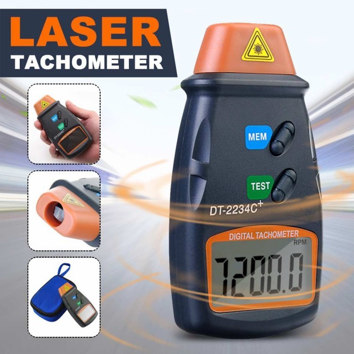 Alat ini digunakan untuk mengukur kecepatan putaran per menit alias rpm. Dengan mengarahkan laser tachometer ke benda yang ingin diukur dan kemudian menahan tombol tachometer, kecepatan putaran langsung terukur secara akurat. Tidak perlu menempelkan tachometer ke benda yang ingin diukur.