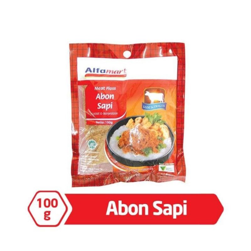 Alfamart Abon Sapi 100 g merupakan abon daging sapi olahan persembahan Alfamart yang hadir untuk memberi menu pilihan baru sajian makanan di rumah. Dibuat dengan memadukan daging sapi dan bumbu pilihan yang menghasilkan abon sapi berkualitas dengan rasa yang sedap, harum, dan nikmat. Abon sapi Alfamart diolah secara higienis dan dikemas modern sehingga dapat disimpan dan dikonsumsi di waktu mendatang. Ideal untuk dijadikan campuran segala makanan, seperti pendamping atau lauk taburan pada nasi dan bubur ayam, atau sebagai isian roti, juga dapat dimakan langsung atau dijadikan camilan. Nikmati kelezatan daging sapi asli dengan rasa gurih yang nikmat dari Alfamart Abon Sapi 100 g.