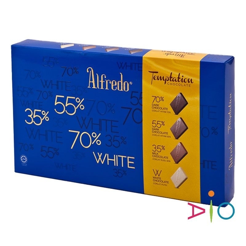 Dalam Kotak ada 4 varian milk chocolate ( hitam dan putih) dengan kandungan persentase coklat yg berbeda"