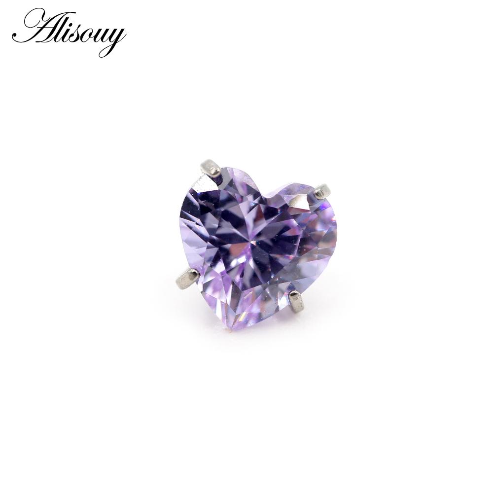 Alisouy 1PC титановый внешний нить сердце циркон для губ лабрет кольца гвоздики серьги пирсинг DIY украшения для тела аксессуар M0.9-3MM светло-фиолетовый