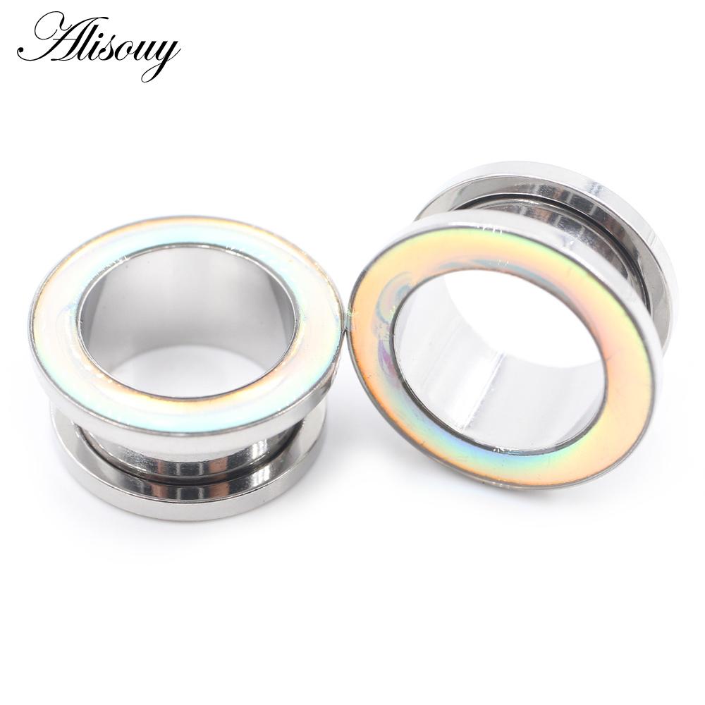 Alisouy 2 шт. полые из нержавеющей стали радужная эмаль ушные манометры туннели вилки расширитель носилки серьги пирсинг украшения для тела 14mm белый
