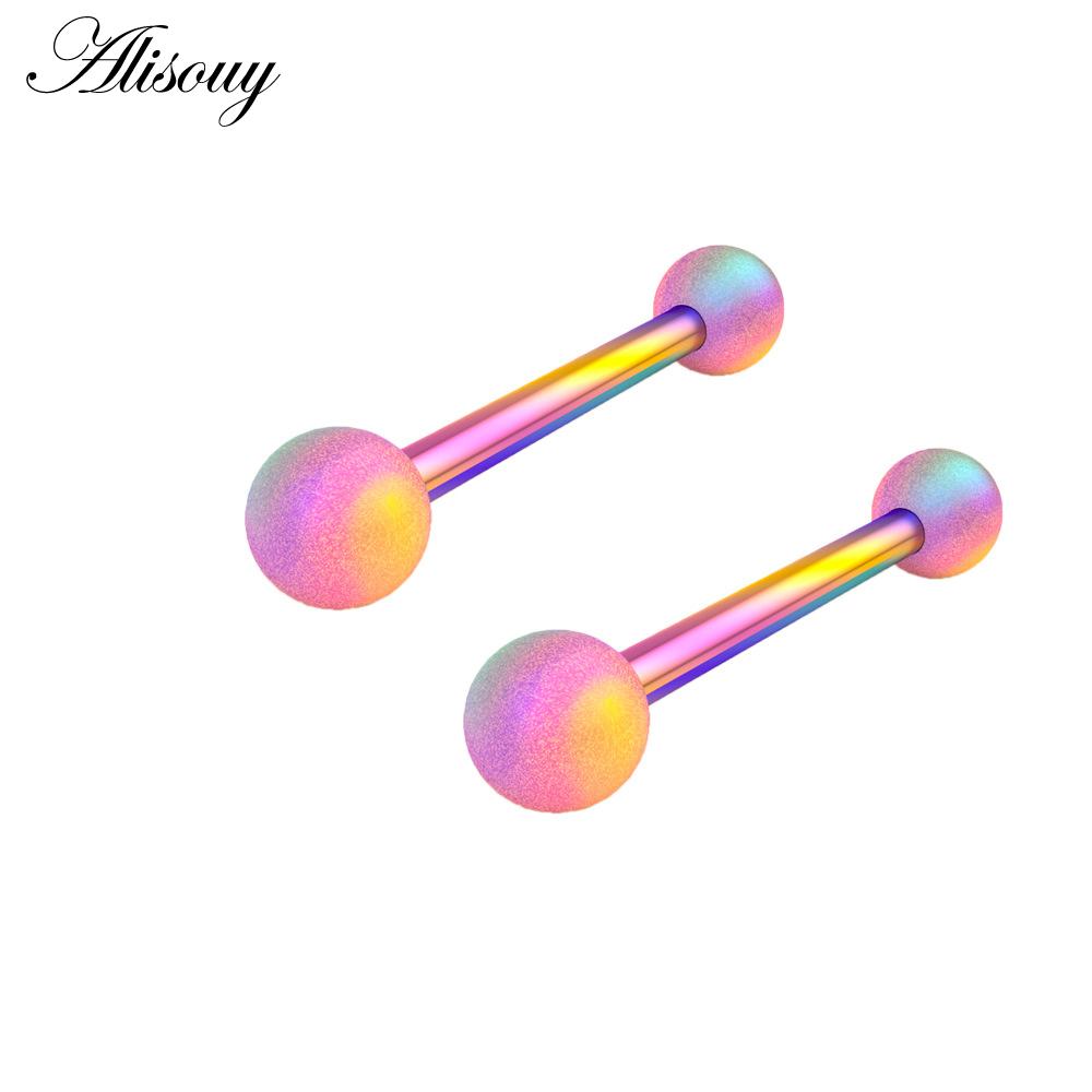Alisouy 2 шт. 14G нержавеющая сталь женщины длинная промышленная штанга язык сосок кольцо бар трагус спирали пирсинг уха ювелирные изделия для тела Style3 разноцветный