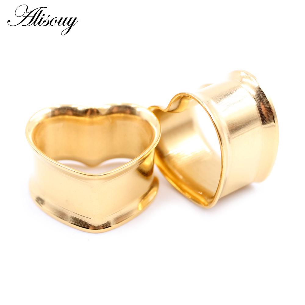 Alisouy 2 шт. 8 мм-30 мм 316L нержавеющая сталь сердечко ушные туннели заглушки расширитель растяжитель калибры серьги пирсинг украшения 14mm золотой