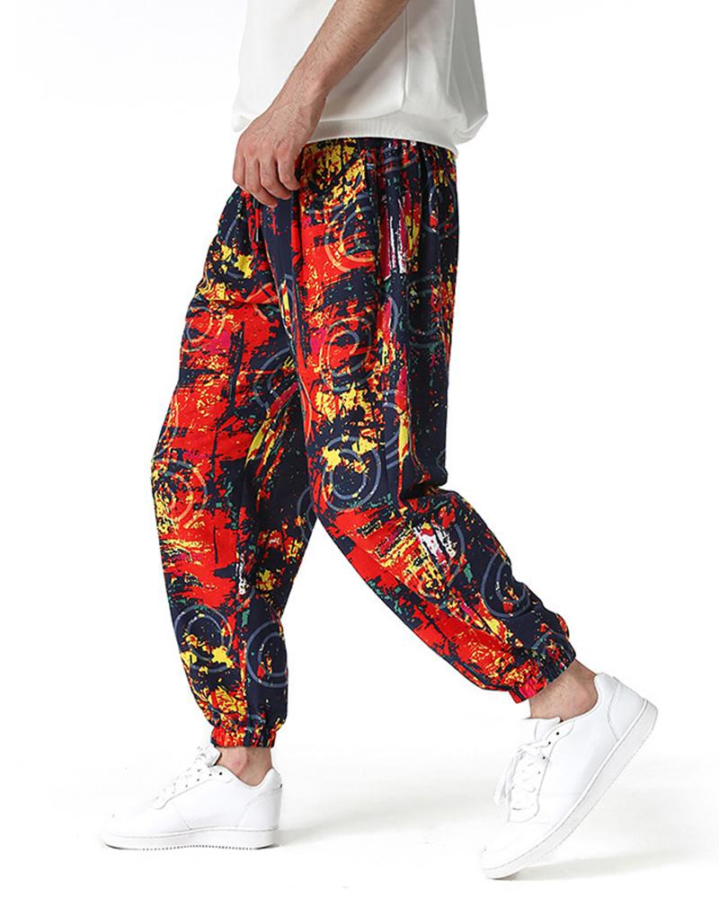 All Over Print Drawstring Baggy Lantern Pants, Style5