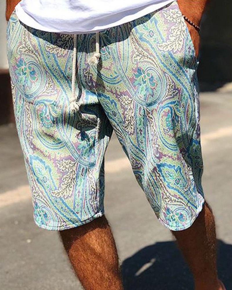 All Over Print Drawstring Short Pants, Blue