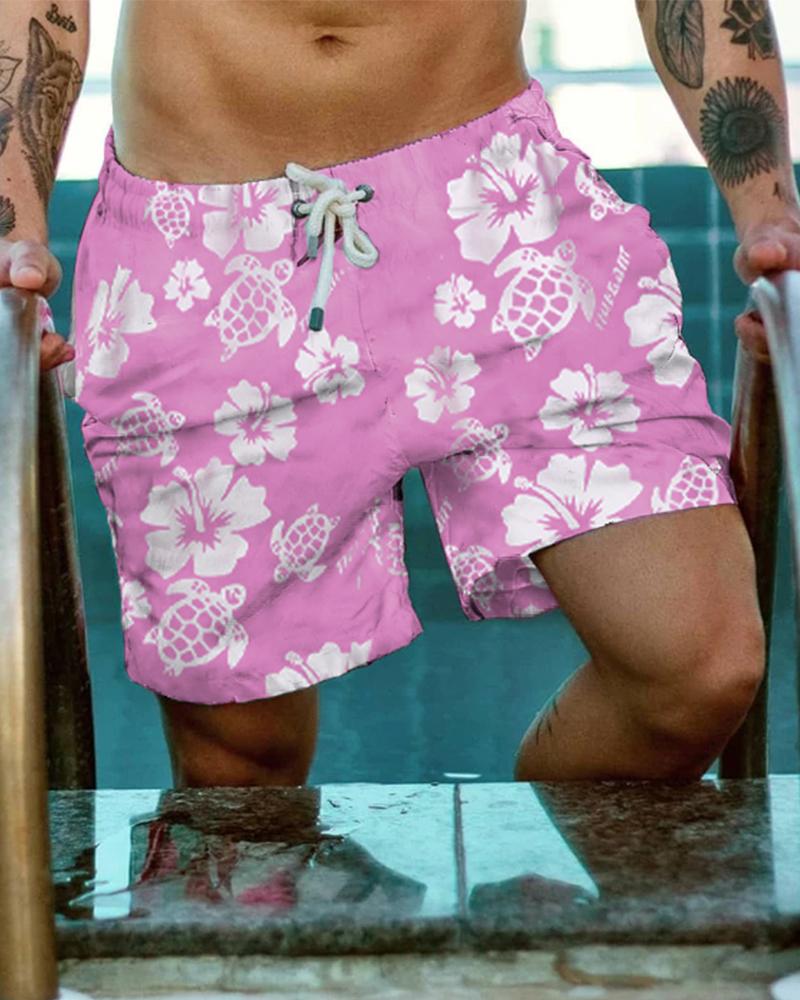 All Over Print Drawstring Short Pants, Pink