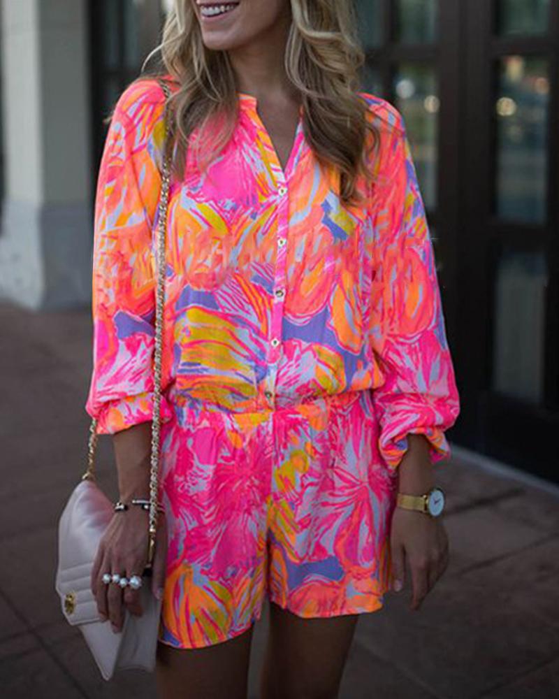 All Over Print Long Sleeve Rompers, Multicolor