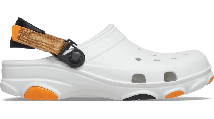 Comfort For The Adventure Travel. Exploration. Adventures near and far. The Classic All-Terrain Clog is ready for it all, even in the harshest environments. With a more rugged outsole and an adjustable turbo strap, the ground beneath your feet has never felt more surmountable. Lightweight Croslite™ construction makes them a practical and packable choice for any outing. It’s time to shift into all-wheel drive. Flip that strap back and go find your fun! All-Terrain Clog Details: Rugged lug outsoles with enhanced tread for increased traction and support Fully molded Croslite™ foam uppers Ventilation ports add breathability and help shed water Easy to clean and quick to dry Adjustable turbo heel straps for a snug, accommodating fit Customizable with Jibbitz™ charms Iconic Crocs Comfort™: Lightweight. Flexible. 360-degree comfort.