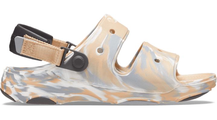 The Classic All-Terrain Marbled Sandal is ready for travel, exploration and adventure, even in the harshest of environments. This rugged sandal now features our new marbled Croslite™ material that creates a unique, colorful effect. While all marbled shoes have the same wavy look, no two shoes are exactly alike. The tread pattern and rubber pods add traction and support, while the two-strap upper and adjustable turbo backstraps work to keep up with your outdoorsy lifestyle. Seven holes in each sandal allow for personalization with Jibbitz™ charms. It's time to shift into all-wheel drive. Flip that strap back and go find your fun! All-Terrain Marbled Sandal Details: Two-strap upper Marbled effect unique to every shoe Adjustable turbo heel straps for a snug, accommodating fit Rugged lug outsoles with enhanced tread for increased traction and support Fully molded Croslite™ foam uppers Easy to clean and quick to dry Customizable with Jibbitz™ charms Iconic Crocs Comfort™: Lightweight. Flexible. 360-degree comfort.