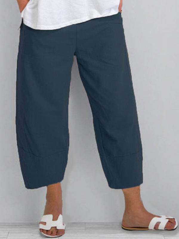 All-match Casual Cotton And Linen Stitching Cropped Pants