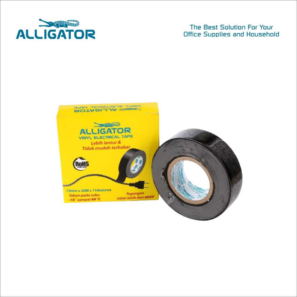 Alligator Electrical Tape atau lakban listrik adalah salah product yang digunakan pada saat kita perlu menyambung atau membetulkan kabel listrik yang rusak karena product ini sangat aman digunakan, lebih elastis dan adhesivenya sangat kuat.