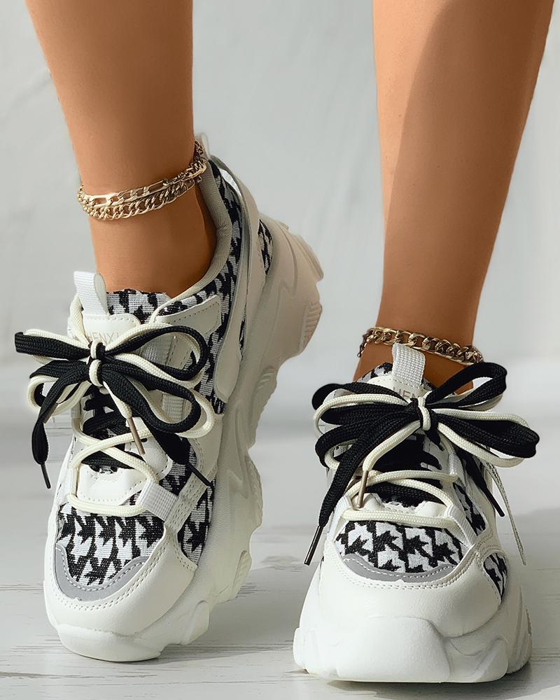 Allover Pattern Colorblock Lace-up Muffin Sneaker, Black
