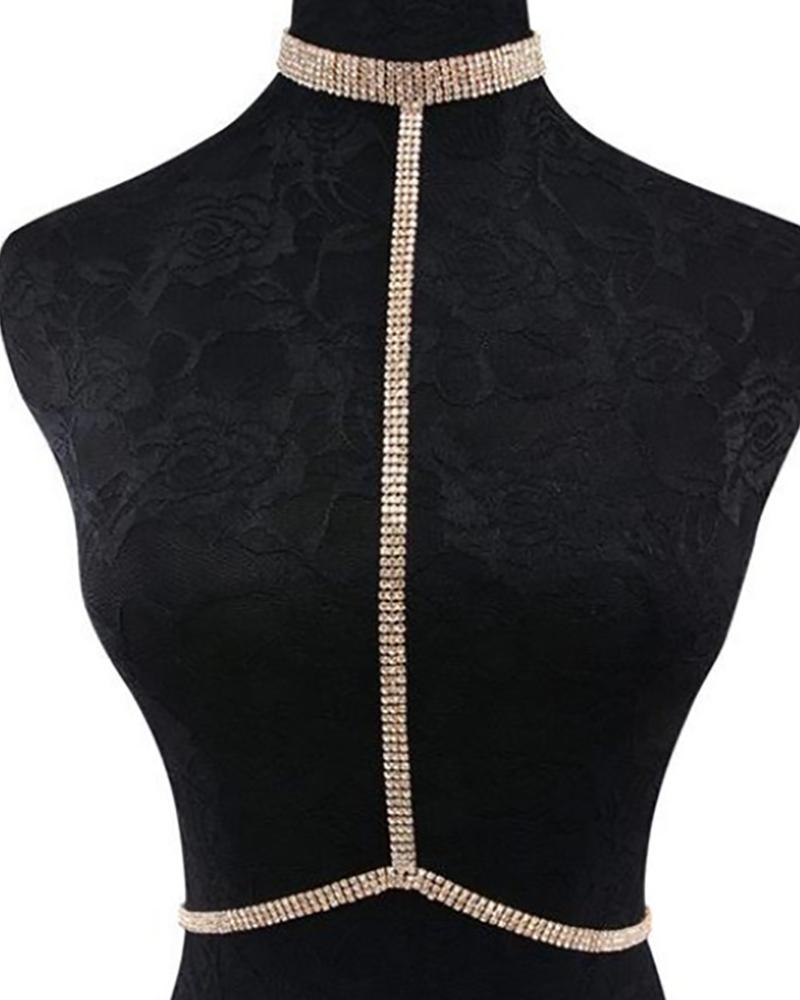 Allover Rhinestone Body Chain, Gold