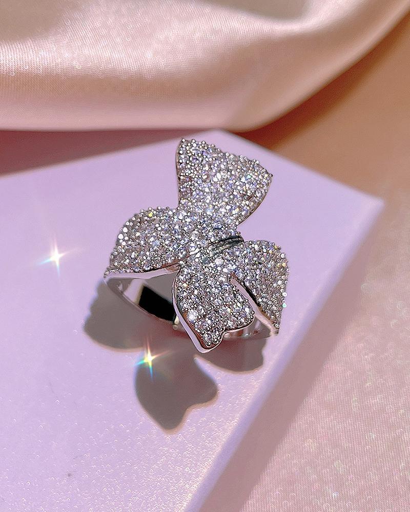 Allover Rhinestone Bowknot Shaped Ring, Style1