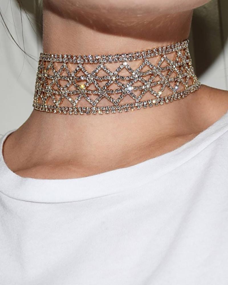 Allover Rhinestone Cutout Choker, Gold